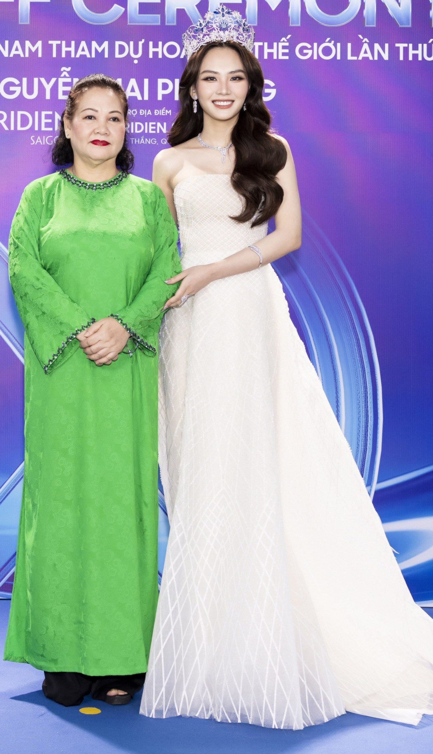 Đặc biệt và hạnh phúc nhất là có sự có mặt của mẹ Hoa hậu Mai Phương. Với sự tham dự của mẹ, sự xuất hiện của Mai Phương trên thảm đỏ trở nên đặc biệt hơn bao giờ hết.