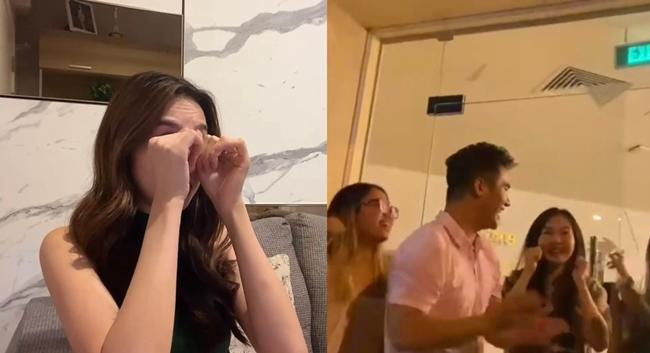 | Thùy Tiên tươi tắn và rạng rỡ chuẩn bị xem quà "xịn" được gửi từ Việt Nam. - Ảnh cắt từ clip. |