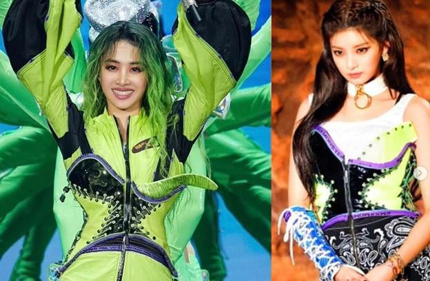 | Thành viên Yiren của EVERGLOW diện thiết kế nhái lại. |