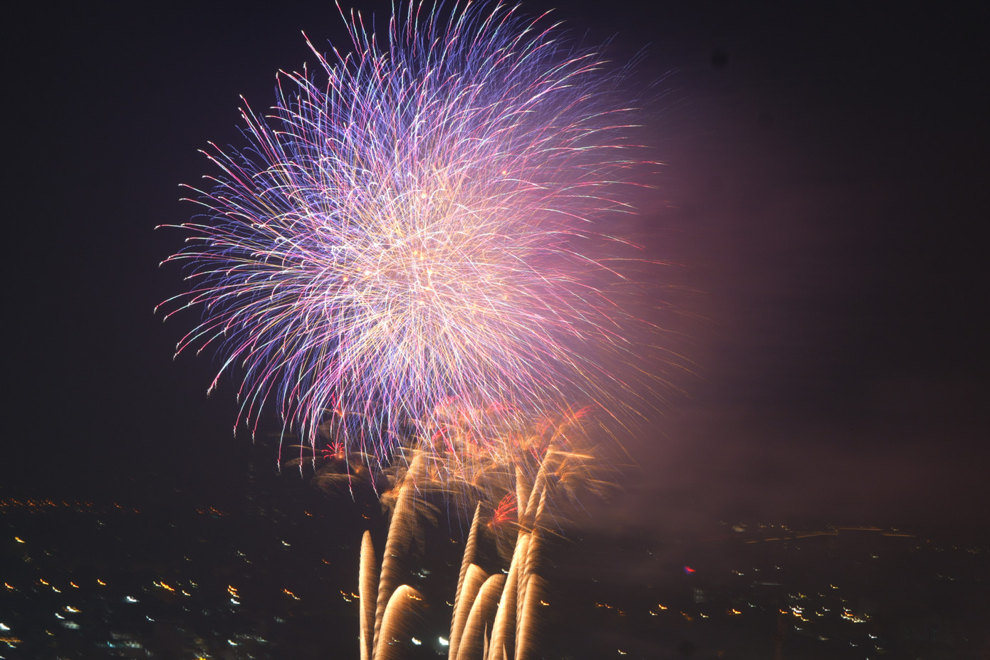 Màn bắn pháo hoa kéo dài 15 phút, kết hợp giữa pháo hoa tầm cao và tầm thấp, hiệu ứng hỏa thuật.