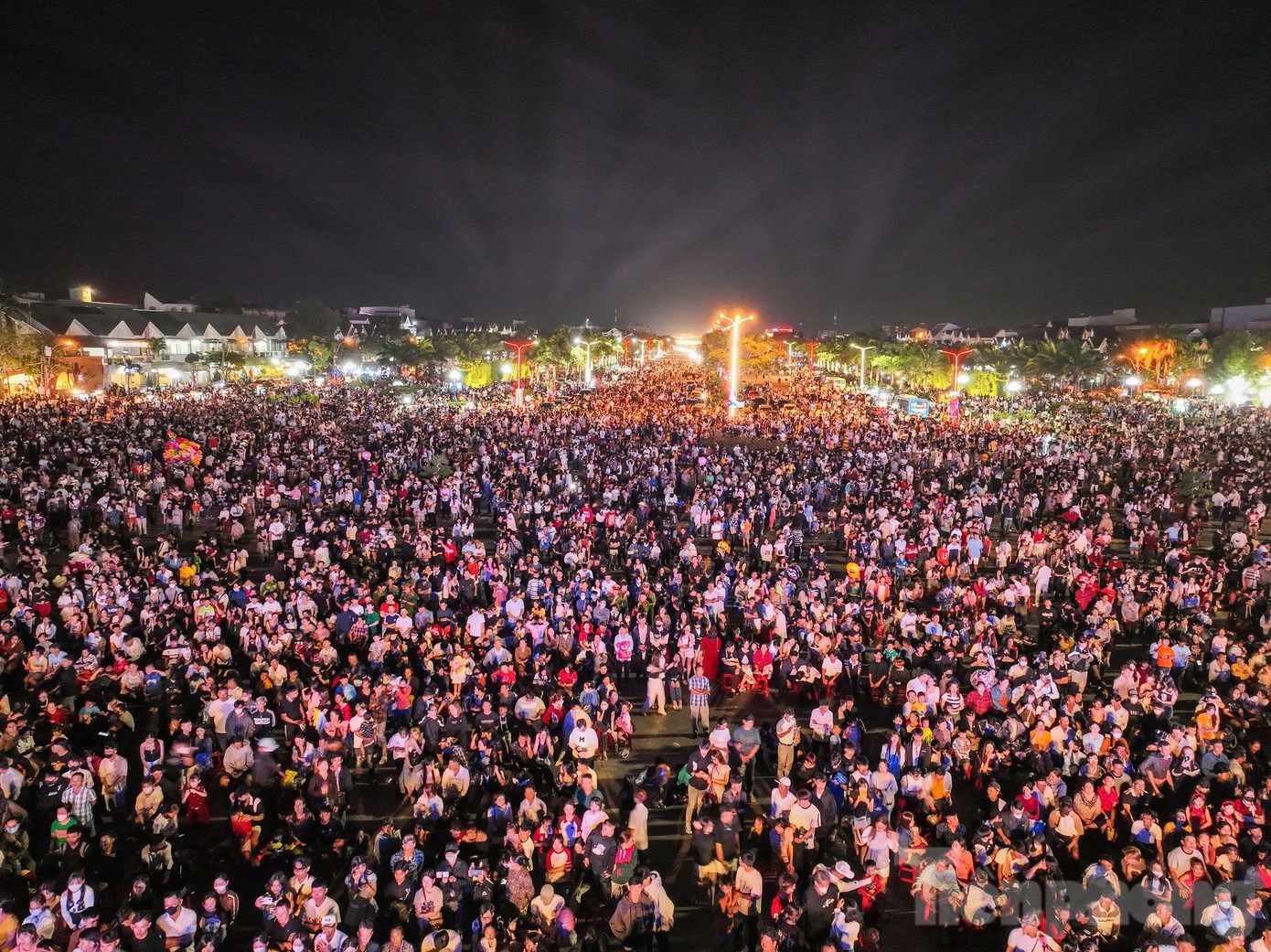 | Dòng người đông nghịt trong đêm giao thừa. |