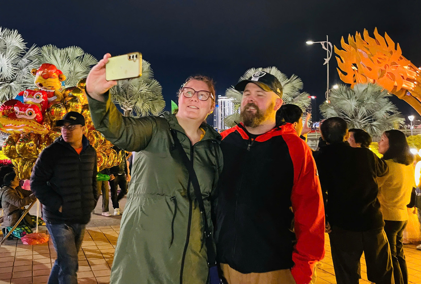 Dòng người du xuân đêm 29 Tết không chỉ có người dân Đà Nẵng, mà còn có rất nhiều du khách trong nước và khách quốc tế cùng chờ thời khắc chuyển giao năm mới.