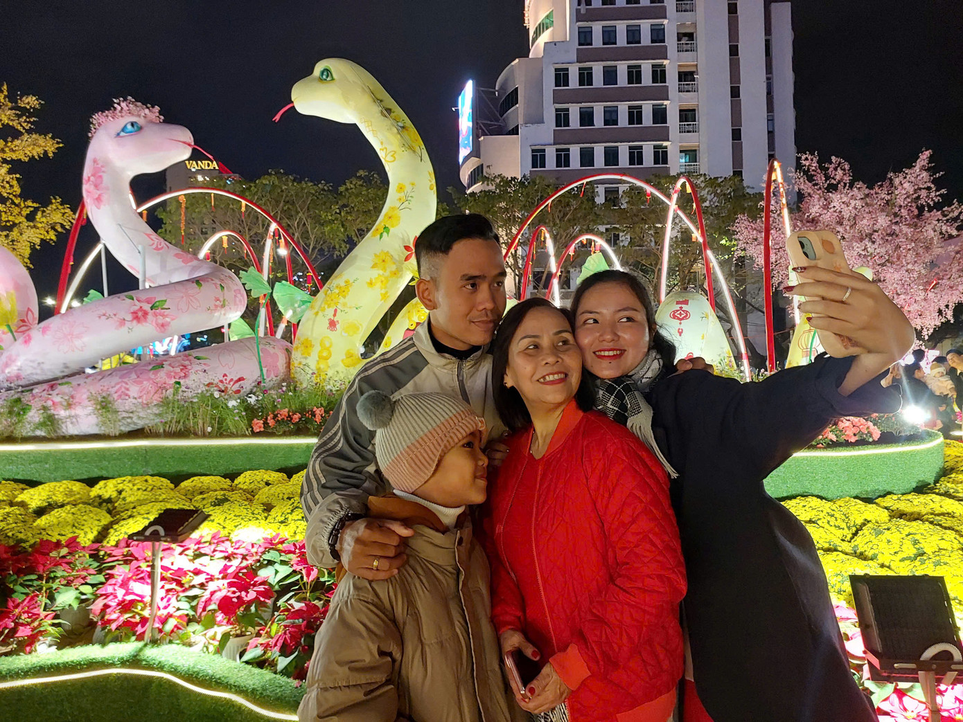 | Tại đường hoa tết Đà Nẵng, tấp nập người đi du xuân, checkin, hân hoan, cùng cầu mong cho năm mới an lành. |
