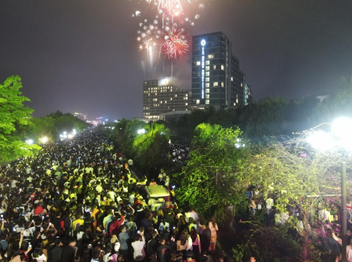 | Hàng vạn khán giả dự sự kiện trước giờ khai mạc. Toàn bộ các tuyến đường nội khu của quần thể FLC Sầm Sơn không còn chỗ trống |