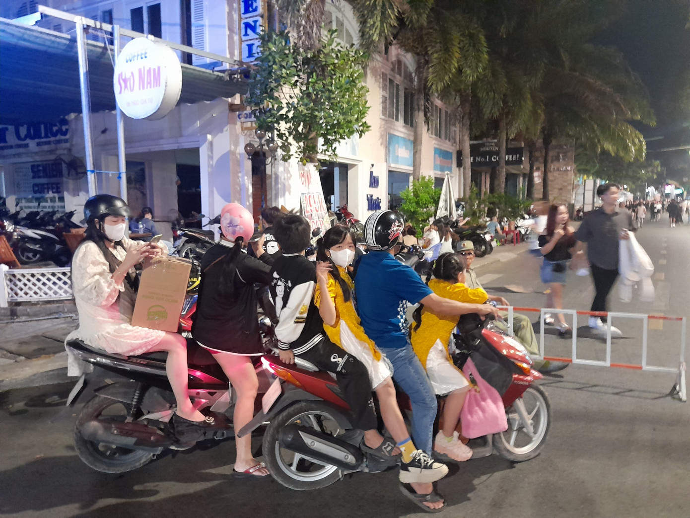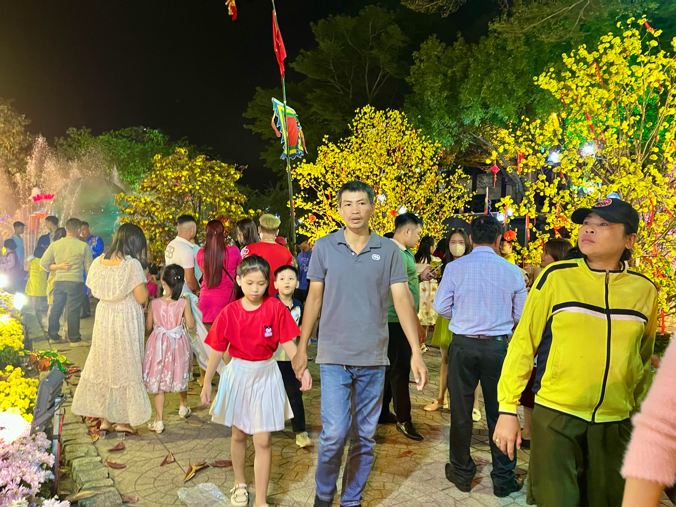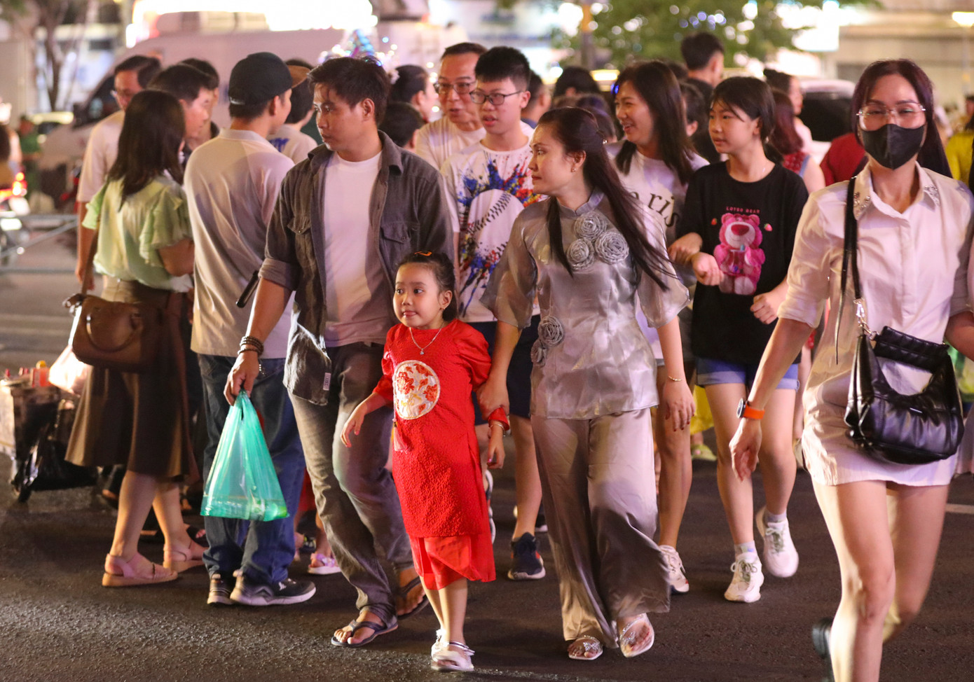 Từ hơn 20h, các tuyến phố trung tâm Nguyễn Văn Linh, Bạch Đằng, Lê Duẩn, Trần Phú, Trần Hưng Đạo… đông đúc, tấp nập. Nhiều người dân và du khách cũng bắt đầu di chuyển về khu vực đường hoa Tết để tham quan, chụp ảnh.
