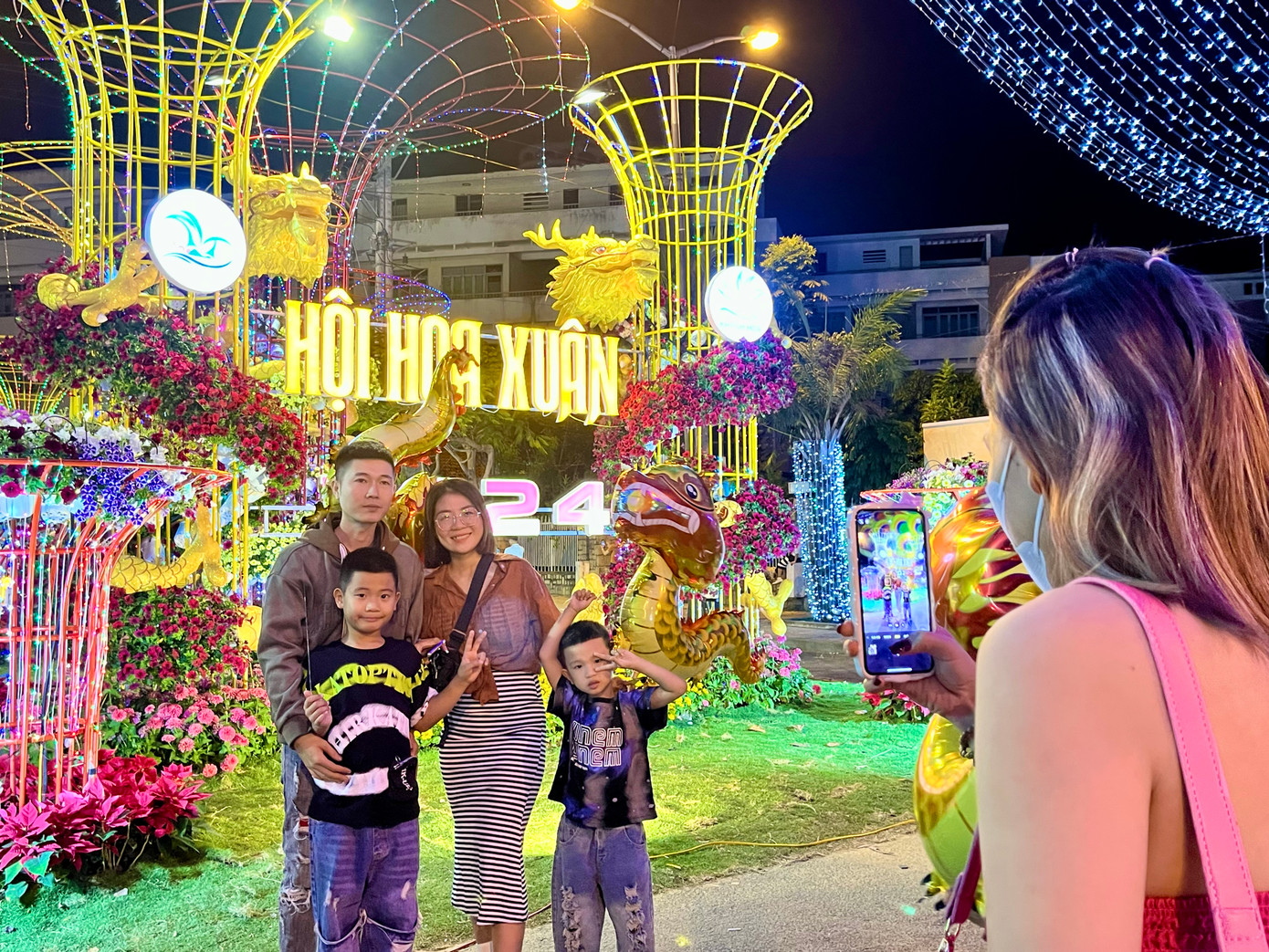 | Rất nhiều gia đình lựa chọn đường hoa Tết Đà Nẵng để cùng nhau vui chơi, chụp ảnh ngày cuối năm Quý Mão. |