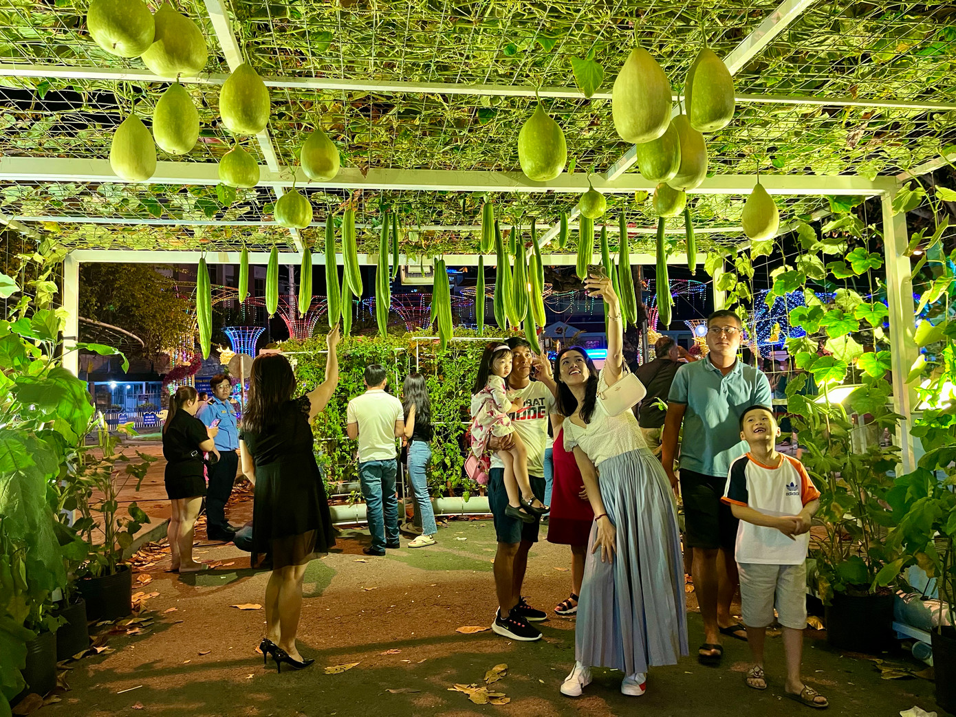 Các cụm linh vật độc đáo dọc đường hoa thu hút đông đảo người dân. Đặc biệt, linh vật rồng "phun nước, phun lửa" định kỳ theo từng khung giờ khiến người dân háo hức chờ đợi. Biển người đứng trước linh vật này để chờ đợi.