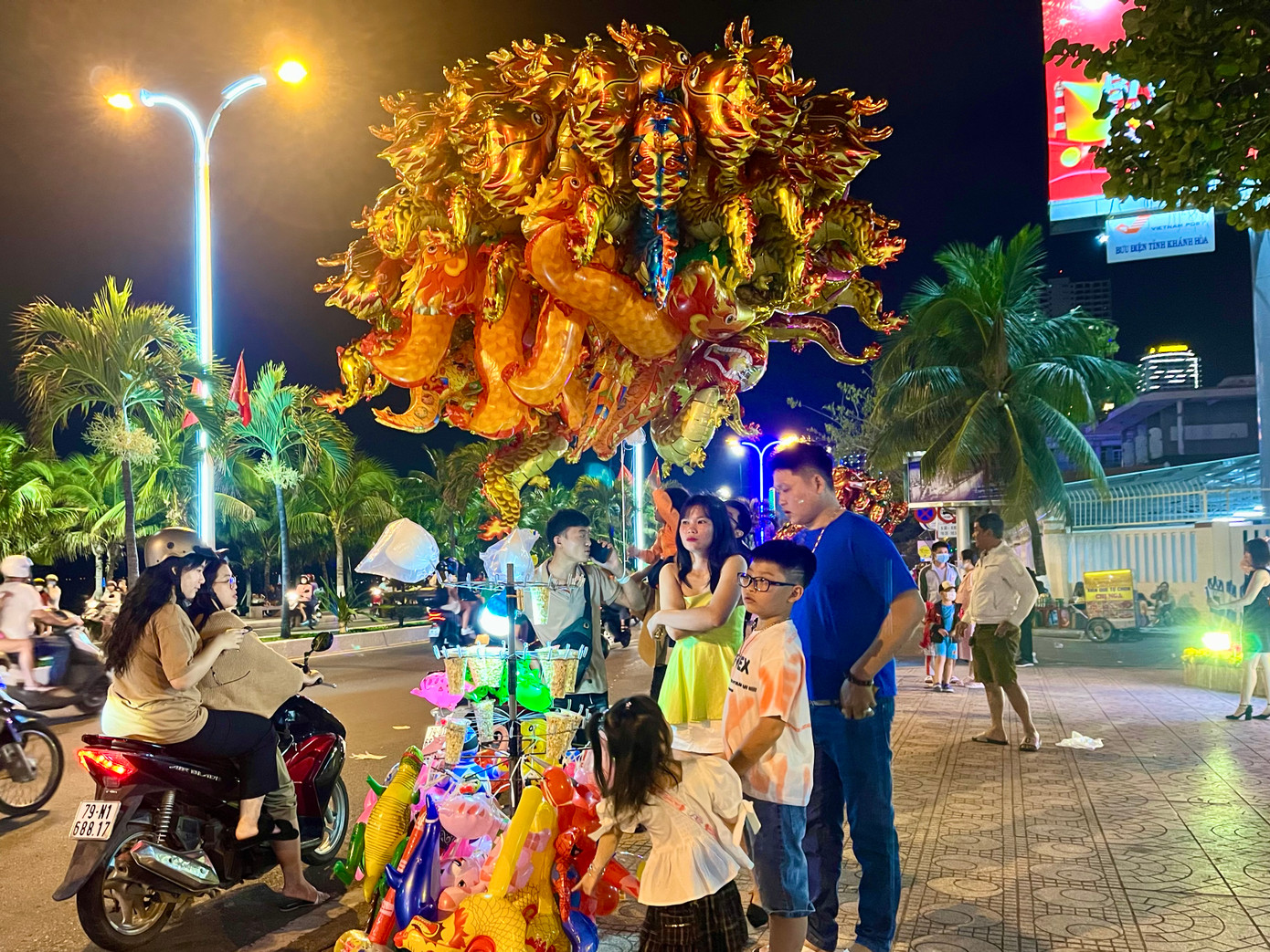 | Anh Đỗ Ngọc Duy (29 tuổi, người dân TP Nha Trang) chia sẻ: “Sau khi dọn dẹp nhà cửa xong, tôi và gia đình ra đây đón năm mới. Không khí ở đây rất náo nhiệt, mọi người ra đường rất đông. Chúng tôi đang rất mong chờ đến khoảnh khắc bắn pháo hoa mừng năm mới”. |