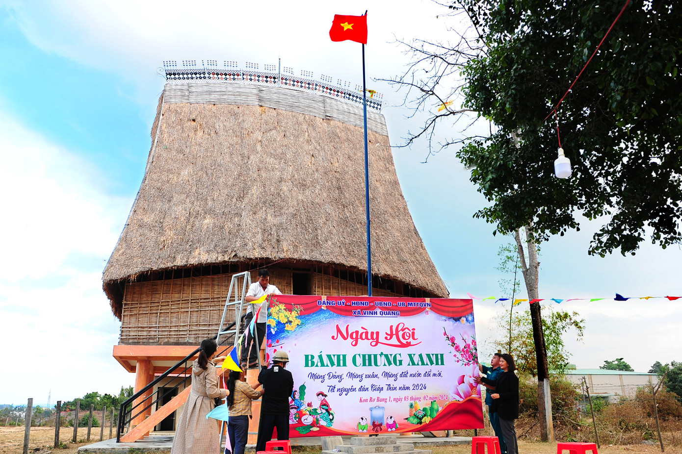 | Tổ chức gói bánh và nấu bánh, tập trung tại Nhà rông văn hóa thôn Kon Rơ Bang 1 (xã Vinh Quang, TP.Kon Tum). |