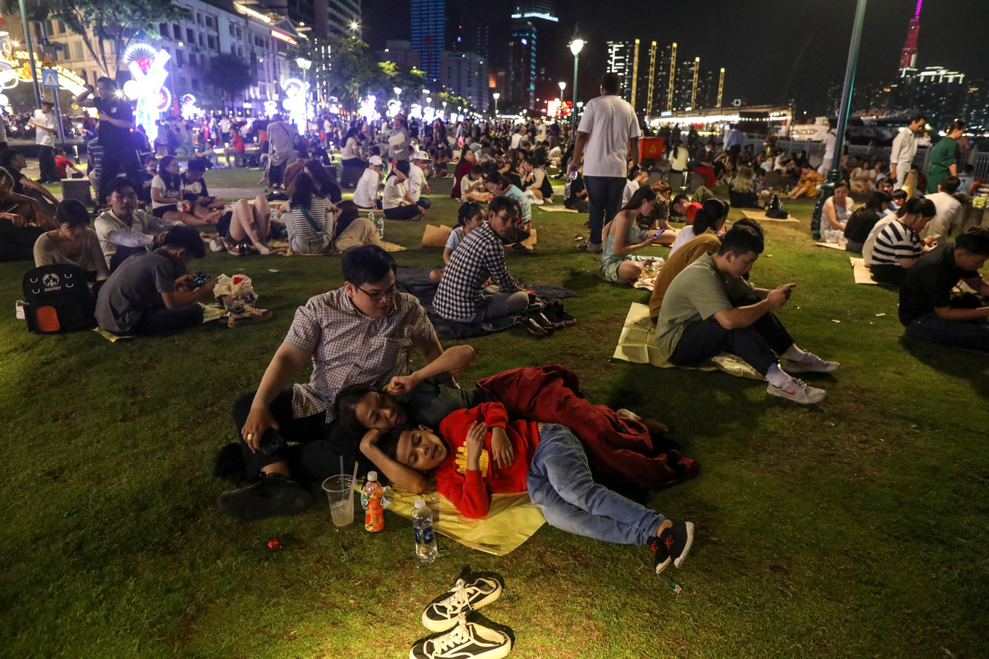 | Nhiều người đến từ sớm để có vị trí "đắc địa" để chiêm ngưỡng màn pháo hoa đêm Giao thừa. |
