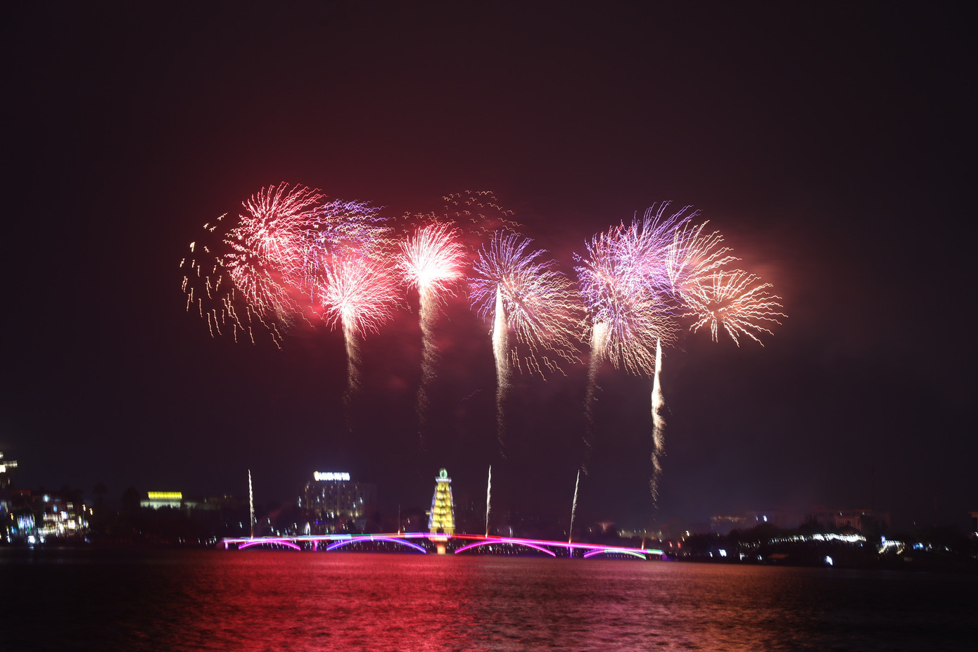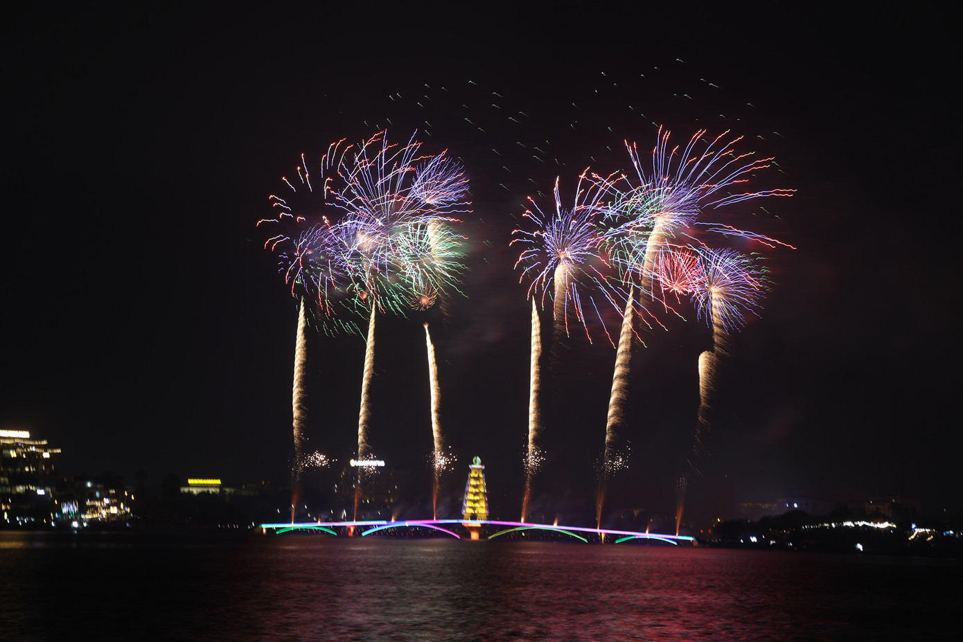 Màn pháo hoa kéo dài liên tục trong 15 phút. Số lượng pháo hoa được bắn năm nay là 900 quả tầm thấp và 200 quả tầm cao.