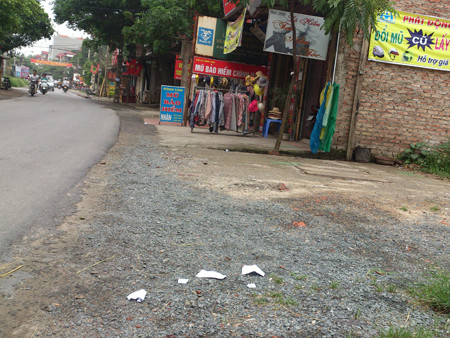Tại tuyến đường trước trường THPT Hoài Đức A (huyện Hoài Đức, Hà Nội) và Trung tâm Giáo dục thường xuyên huyện Hoài Đức sau giờ thi xuất hiện rải rác phao thi hai bên đường, trong các bụi cỏ.