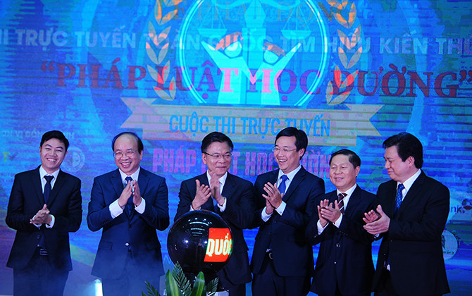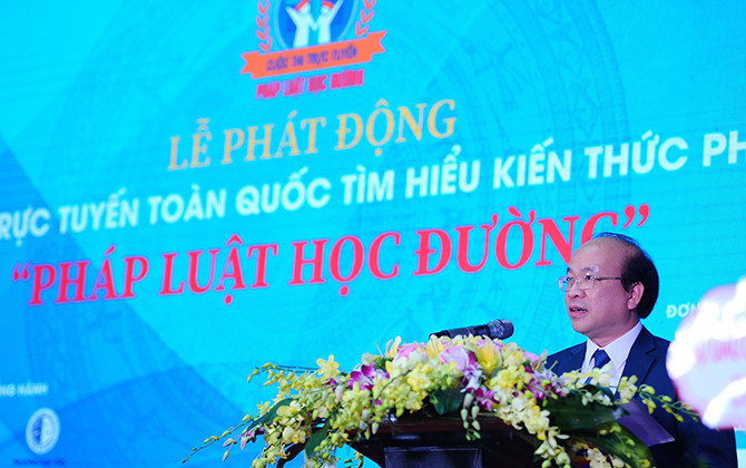 Tối ngày 8/11 tại Hà Nội, Bộ Tư pháp, Bộ GD-ĐT, Bộ LĐ-TB-XH, Trung ương Đoàn phối hợp phát động cuộc thi trực tuyến toàn quốc “Pháp luật học đường” dành cho học sinh các trường THPT, học viên trung tâm giáo dục thường xuyên và học sinh, sinh viên các cơ sở giáo dục nghề nghiệp, hưởng ứng ngày Pháp luật Việt Nam 9-11.