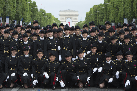 Các học viên trường quân sự Ecole Polytehnique chụp ảnh tại đại lộ Champs-Elysées.
