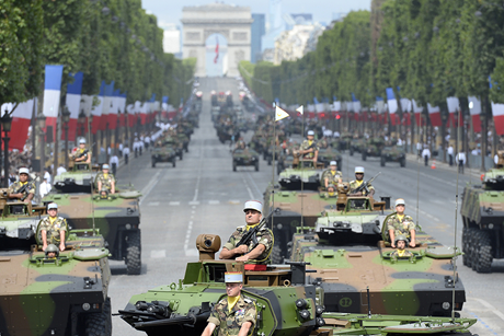 Trong ảnh là các lực lượng Pháp tham gia lễ duyệt binh chào mừng ngày quốc khánh lần thứ 226 năm nay. Cuộc diễu binh bắt đầu lúc 10h30 và kết thúc lúc 11h55 với sự tham gia của 3.500 binh sỹ, 208 phương tiện quân sự và 240 kỵ binh thuộc Lực lượng Vệ binh Cộng hòa.
