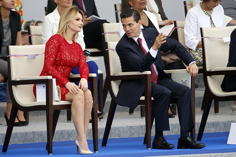 Năm nay, Mexico là khách mời danh dự trong lễ duyệt binh, Tổng thống Mexico Enrique Pena Nieto và phu nhân Angelica Rivera (ảnh) đang ở thăm chính thức nước Pháp. Ảnh: AFP.