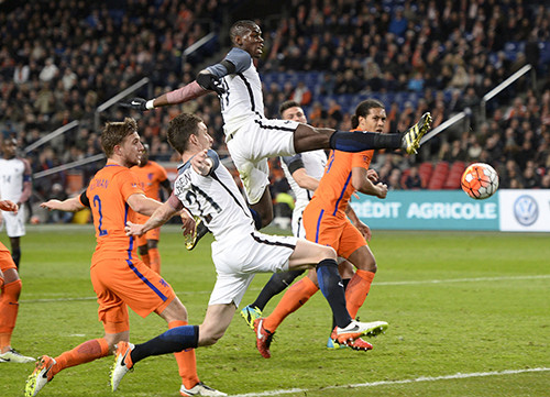 Đội khách mở tỷ số ngay phút thứ sáu nhờ cú đá phạt hàng rào đẹp mắt bằng chân trái của tiền đạo đang đạt phong độ cao ở Atletico Madrid, Antoine Griezmann,. Một phút trước khi trận đấu được tạm dừng để tưởng niệm Cruyff, Olivier Giroud nhân đôi lợi thế cho Pháp với cú ra chân từ trung tâm khu vực 16m50 trong một pha dàn xếp đá phạt góc.