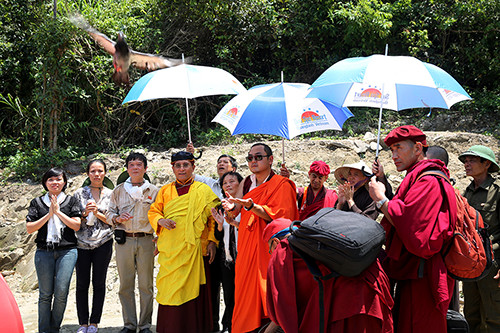 Pháp vương và Nhiếp chính vương phóng sinh chim bồ câu tại mộ Đại tướng Võ Nguyên Giáp. Ảnh:Drukpa Việt Nam.
