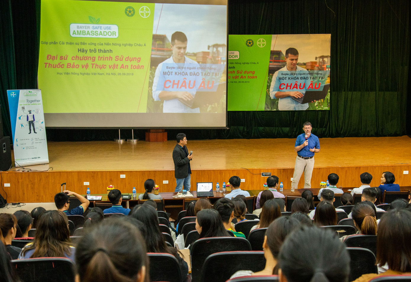 Ông Kevin Doughty, Giám đốc cấp cao toàn cầu về quản lí sản phẩm, Tập đoàn Bayer chia sẻ: “Cam kết sử dụng đúng cách và an toàn các sản phẩm thuốc BVTV là một phần không tách rời với việc quảng bá và cũng là sứ mệnh kinh doanh lĩnh vực thuốc BVTV của Bayer. Với mong muốn góp phần giúp ngành nông nghiệp phát triển bền vững, Bayer Việt Nam hợp tác với nhà trường nhằm tăng cường kiến thức cho sinh viên, giúp các em hiểu được tầm quan trọng của phát triển nông nghiệp bền vững. Thông qua các hoạt động giáo dục, tập huấn kỹ thuật chuyên môn, trang bị kiến thức ứng dụng thuốc BVTV cho nông dân, các bạn trẻ sẽ truyền tải thông điệp đến với người nông dân, vì tương lai nông nghiệp bền vững hãy cam kết thay đổi hành vi để sử dụng thuốc BVTV an toàn và có trách nhiệm”.