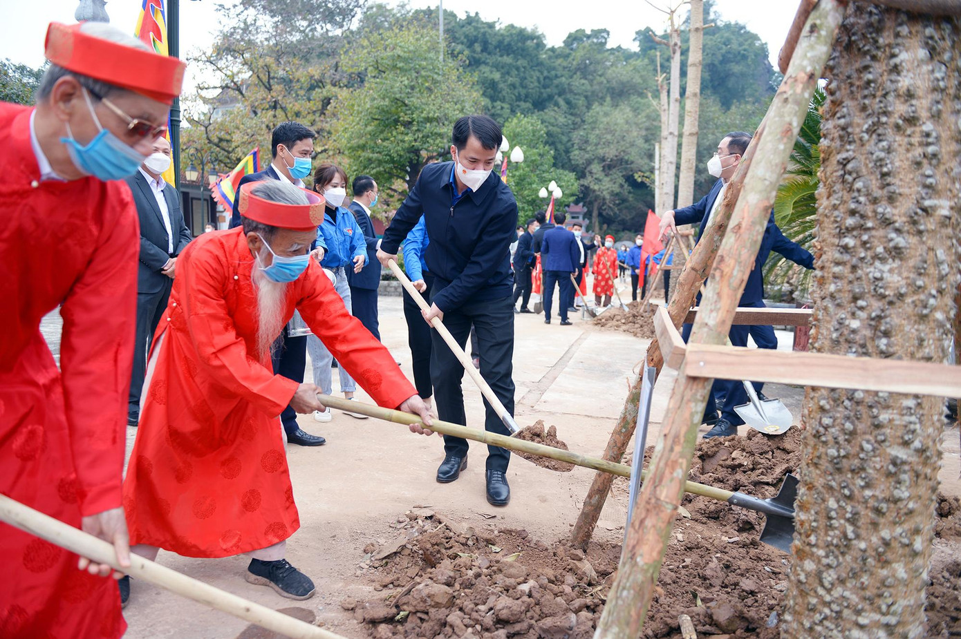 | Phó Bí thư thường trực Thành Đoàn, Chủ tịch Hội LHTN TP. Hà Nội Nguyễn Đức Tiến cùng đoàn viên, thanh niên tham gia trồng cây tại chương trình. Ảnh: DƯƠNG TRIỀU |