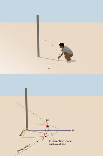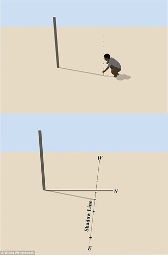 Phương pháp này chỉ có thể dùng được trong những ngày nắng liên tục để có thể vẽ một đường thẳng chính xác theo hướng Đông - Tây.