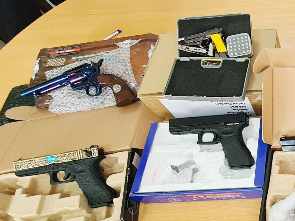 Bước đầu kiểm tra, lực lượng chức năng đã phát hiện 97 gói hàng có trọng lượng 49,3kg, bên trong chứa 8 sản phẩm hình dạng súng và rất nhiều phụ kiện lắp ráp súng.