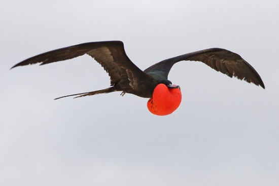 Chim Frigate nổi bật với chiếc diều lớn màu đỏ chót. Với tài bay lượn của mình, chim Frigate có thể “du lịch” khắp Ấn Độ Dương.