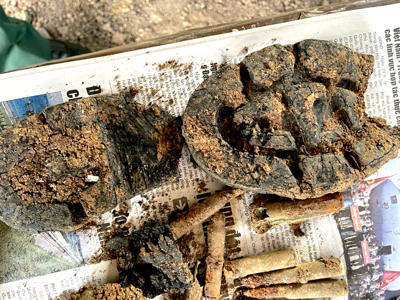 | Một số di vật được tìm thấy ở mộ liệt sĩ tập thể. |
