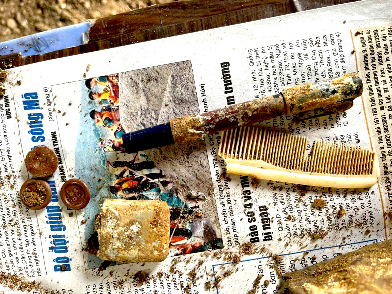 Các di vật được tìm thấy nhiều như cúc áo (quần), bút máy (hiệu Kaolo của Pháp), 1 băng đạn bên trong có chứa đạn carbin, ví, lược, đoạn ngắn bút chì, cán tẩu thuốc lá, vòng tay bằng đồng.
