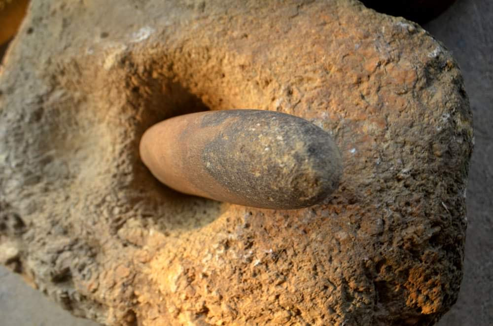 | Những hòn đá nhỏ hình trụ cầm nắm vừa lòng bàn tay giống như chiếc chày đá |