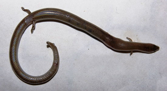 TPO - Tối 16-2, sau cơn mưa, chị Nguyễn Anh Thư, ngụ phường Chánh Nghĩa (thị xã Thủ Dầu Một, Bình Dương) phát hiện con rắn có bốn chân, to gần bằng ngón tay út, dài khoảng 20 cm, nằm cuộn tròn trước cửa nhà.
