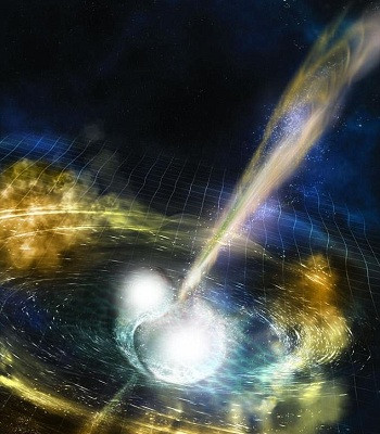 Hai ngôi sao neutron, mỗi thiên thể có đường kính khoảng 19 km, kéo giãn và bóp méo trường không gian - thời gian khi chúng xoay tròn quanh nhau và cuối cùng va vào nhau. Giống như những gợn sóng khi ném một viên đá xuống ao nước, sóng hấp dẫn truyền qua vũ trụ ở vận tốc ánh sáng. Chúng được nhận biết bởi hai máy dò sóng cực nhạy ở Washington và Louisiana do Đài quan sát sóng hấp dẫn bằng giao thoa kế laser (Ligo) vận hành.