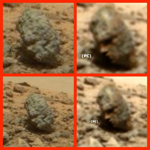 Hiện vật thể lạ nghi đầu chiến binh này đang gây nên làn sóng tranh cãi dữ dội, nhiều người cho rằng nó thực sự là vết tích của một sự sống cổ đại nào đó trên sao Hỏa. Nguồn ảnh: ufosightingsdaily.