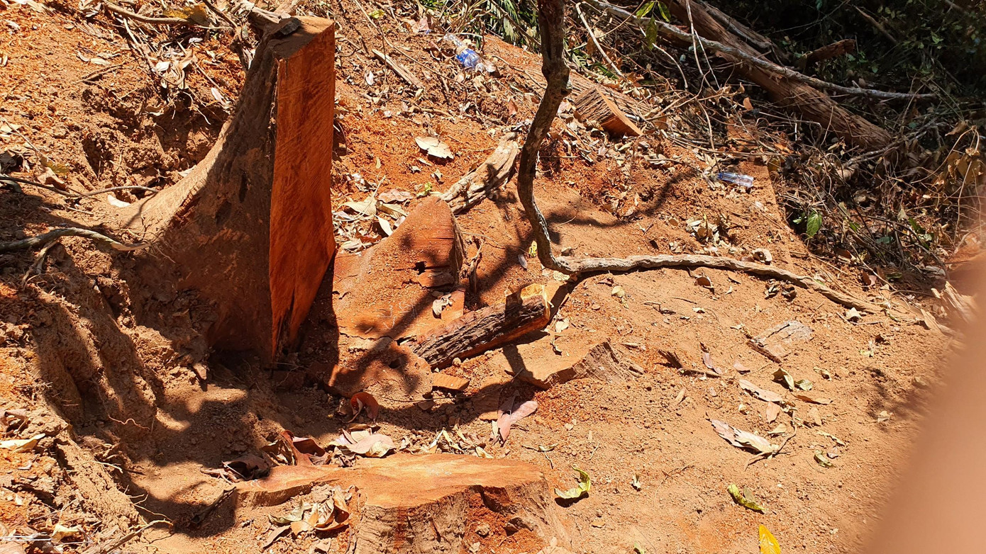 | Các thân gỗ đều bị cưa, khoét sát đất. |