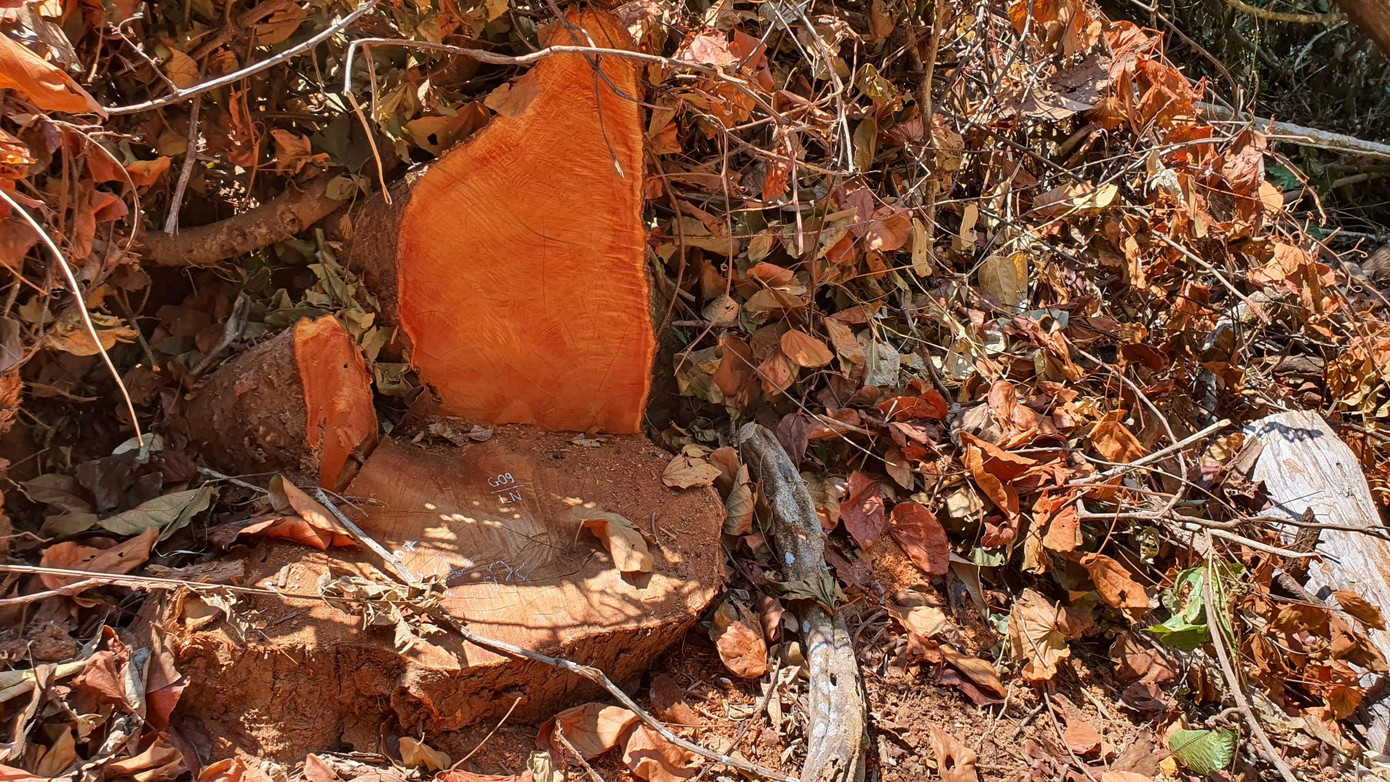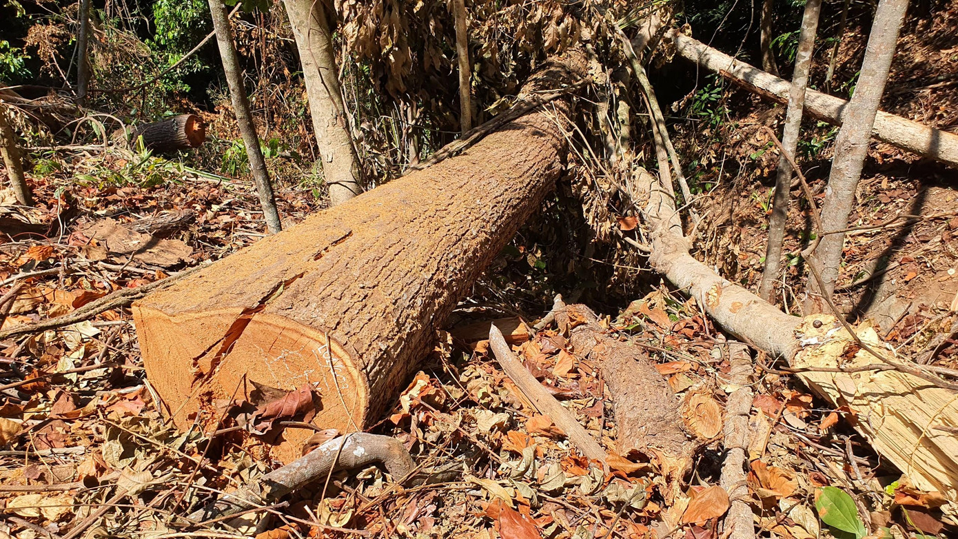 | Lâm tặc chỉ lấy đi phần gỗ lành lặn, bỏ lại các lóng gỗ bị lỗi. |