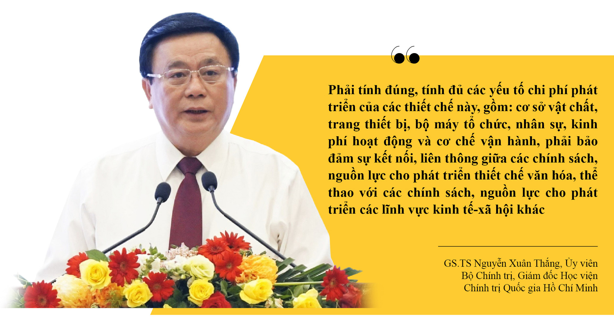 Giám đốc Học viện Chính trị Quốc gia Hồ Chí Minh nhấn mạnh, phát triển hệ thống thiết chế văn hóa, thể thao là sự hiện thực hóa quan điểm của Đảng về mối quan hệ giữa phát triển văn hóa với phát triển con người. Phát triển hệ thống thiết chế văn hóa, thể thao xét cho đến cùng là vì mục tiêu phát triển con người một cách toàn diện.