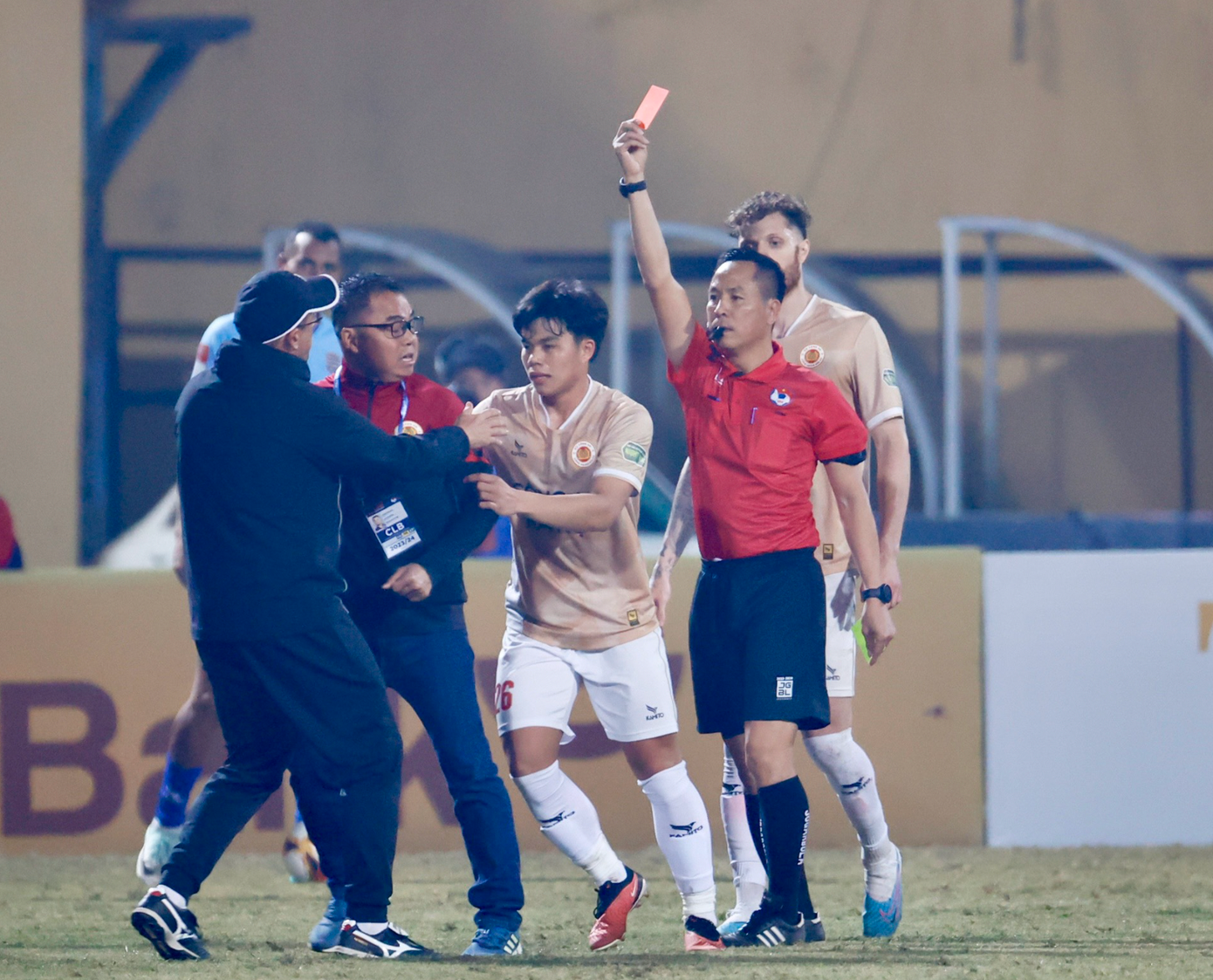 Phút 71 trận đấu giữa CAHN và Bình Dương vòng 8 Night Wolf V-League 2023/2024, ông Trần Tiến Đại đã lao vào sân phản ứng trọng tài Nguyễn Viết Duẩn. Dù bị rút thẻ đỏ, ông Đại tiếp tục ở lại đôi co, vứt thẻ BTC xuống sân. Vị GĐKT CAHN sau đó đứng trên khán đài chỉ đạo thông qua trợ lý. Theo thống kê, ông Trần Tiến Đại sau 8 trận đã nhận tới 3 thẻ vàng và 1 thẻ đỏ, nhiều hơn bất kỳ cầu thủ nào của CAHN.