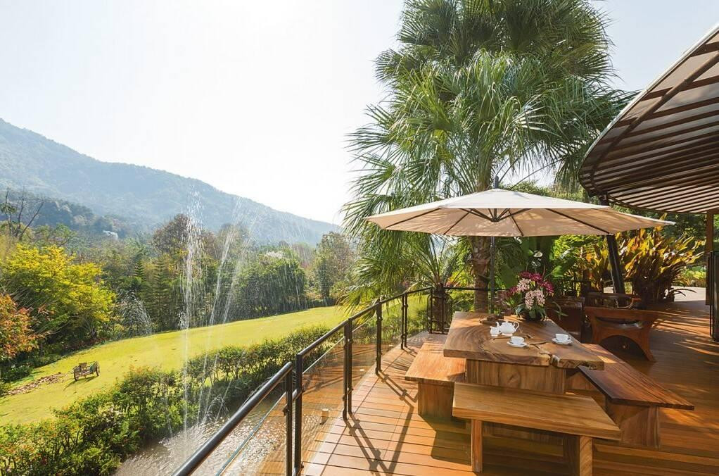 | Ban công gỗ có tầm nhìn hướng ra khu vườn xanh mát, là địa điểm nghỉ ngơi, thư giãn lý tưởng của các thành viên trong gia đình sau một ngày dài làm việc. |