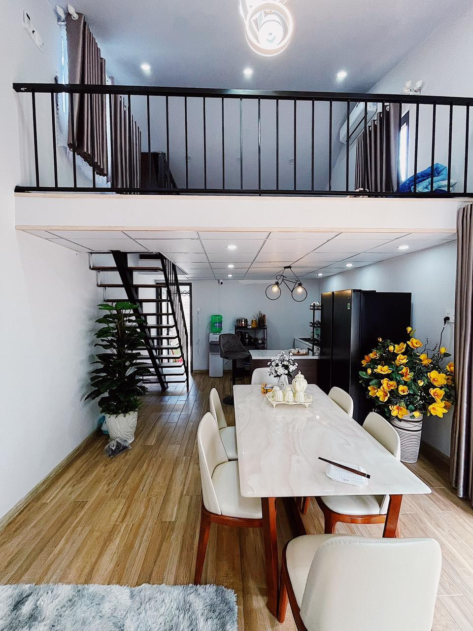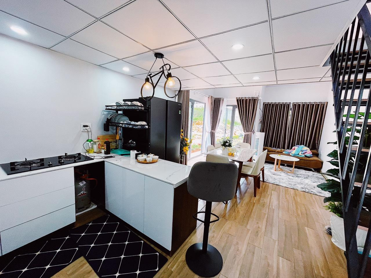 | Trong hình là một căn nhà lắp ghép khác được anh Kha và các cộng sự thực hiện tại TP Bảo Lộc (Lâm Đồng). Căn nhà có gác lửng này có diện tích 70m2, công năng gồm: 2 phòng ngủ (phòng ngủ chính dưới tầng 1, phòng phụ trên gác); phòng khách, bếp; nhà vệ sinh. |
