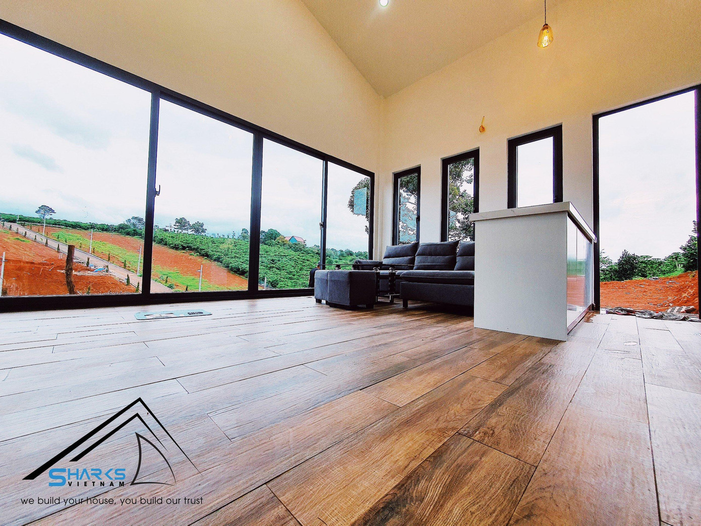 | Đối với sàn nhà, anh Kha cho biết do sàn làm trên mặt đất có độ rung lớn nên anh và các cộng sự luôn làm sàn bằng gạch thay vì sàn gỗ vì sàn gỗ tạo ra tiếng ồn. Ở các dự án nhà lắp ghép đã hoàn thiện, nhóm của anh Kha thường sử dụng sàn gạch giả gỗ để tạo sự sang trọng, tinh tế và hợp thời đại. |