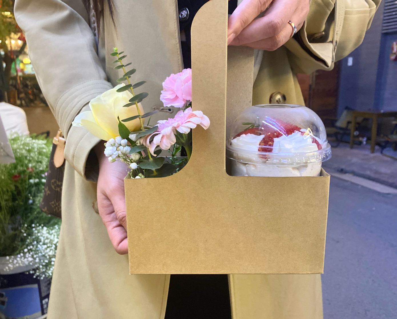 | Một vài khách hàng tới cửa hàng mua set quà bánh và hoa. |
