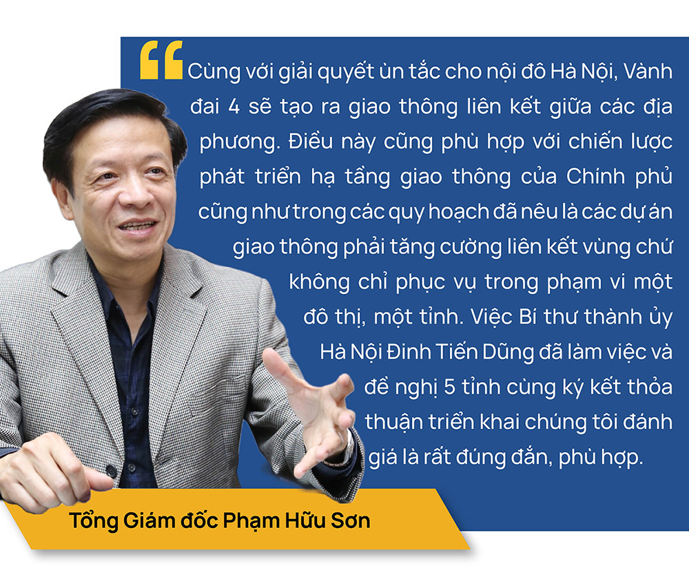 Cùng với giải quyết ùn tắc cho nội đô Hà Nội, Vành đai 4 sẽ tạo ra giao thông liên kết giữa các địa phương. Điều này cũng phù hợp với chiến lược phát triển hạ tầng giao thông của Chính phủ cũng như trong các quy hoạch đã nêu là các dự án giao thông phải tăng cường liên kết vùng chứ không chỉ phục vụ trong phạm vi một đô thị, một tỉnh. Vừa rồi, Bí thư thành ủy Hà Nội Đinh Tiến Dũng đã làm việc và đề nghị 5 tỉnh cùng ký kết thỏa thuận triển khai chúng tôi đánh giá là rất đúng đắn. Vì tuy tuyến đường chỉ có 3 tỉnh, thành xây dựng (Hà Nội, Hưng Yên, Bắc Ninh) nhưng lại có 5 tỉnh, thành (thêm Hà Nam, Vĩnh Phúc) được hưởng lợi thông qua con đường này. Do vậy các tỉnh đều ký kết và tham gia hỗ trợ cho phần việc đang rất quan trọng tại các dự án hạ tầng hiện nay là huy động vật liệu để làm nên con đường. Đây là một tầm nhìn, vừa giúp hoàn thành sớm dự án vừa giải quyết trước các khó khăn dự án sẽ gặp phải.
