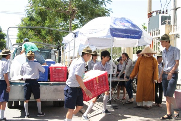 Phật Tử Kim Liên (chùa Thanh Hà) cho biết: “Bọn em đã dậy từ 4h sáng để chuẩn bị hàng trăm suất cơm đến phụ huynh và học sinh, nhất là những trường hợp đến từ xa”.