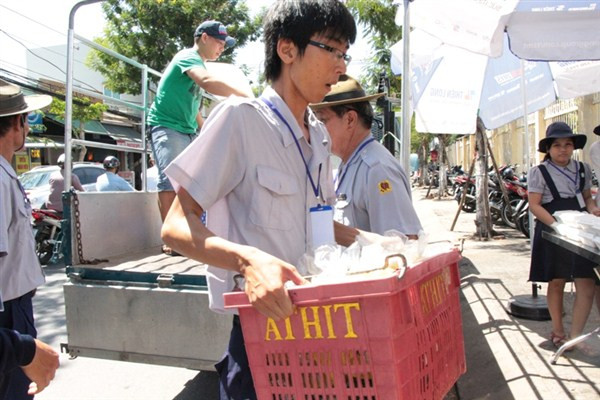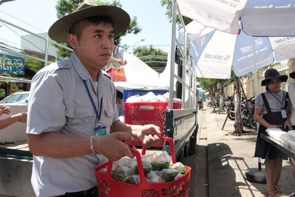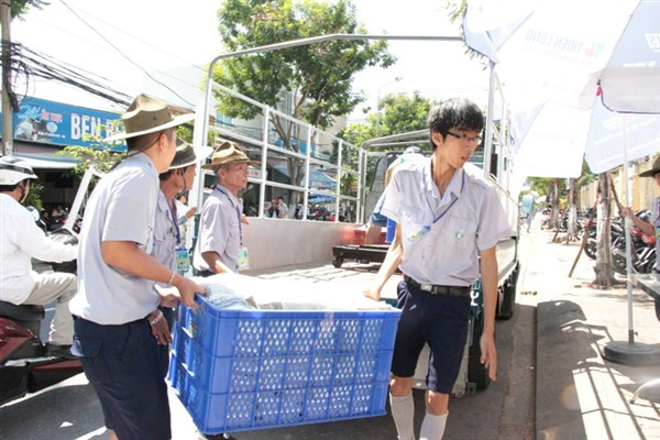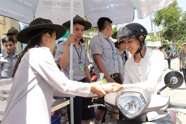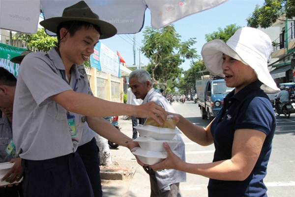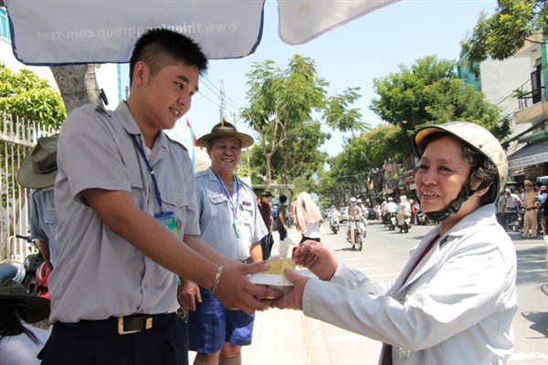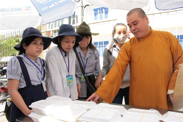 Từ 10h sáng, các phật tử chùa Kỳ Viên (quận Thanh Khê) đã chuẩn bị 1.000 suất cơm chay miễn phí để phát cho phụ huynh, thí sinh ba quận Ngũ Hành Sơn, Thanh Khê và Liên chiểu với các địa điểm THPT Hoàng Hoa Thám, Cao đẳng Thương mại, THPT Thanh Khê, Đại học Sư phạm Đà Nẵng.