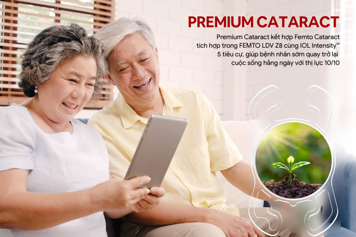Không chỉ dừng lại ở việc nâng cao kỹ thuật mổ, FLACS còn mở đường cho các gói điều trị cao cấp như Premium Cataract – sự kết hợp giữa phẫu thuật FLACS và thủy tinh thể nhân tạo đa tiêu cự thế hệ mới IOL Hanita Intensity™ Giải pháp này giúp bệnh nhân đạt được thị lực sắc nét ở cả ba khoảng cách (xa – gần – trung gian), giảm đáng kể sự phụ thuộc vào kính lão hoặc kính đọc sách, đồng thời cải thiện thị lực trong điều kiện ánh sáng yếu hoặc chói sáng.