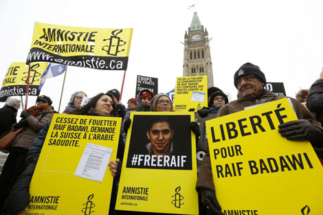 Năm 2013, Raif Badawi Raif bị tuyên án 7 năm tù và trừng phạt 600 roi vì tội vi phạm Luật công nghệ Arập Xêút và phỉ báng những nhân vật đạo Hồi cao cấp thông qua blog do anh tạo ra. Năm 2014, sau khi kháng án, Tòa án hình sự ở Jeddah đã tăng mức phạt tù lên đến 10 năm và trừng phạt 1.000 roi, đồng thời bị cấm du hành ra nước ngoài trong 10 năm sau khi mãn hạn tù và đóng phạt 1 triệu riyal (khoảng 266.500USD)!