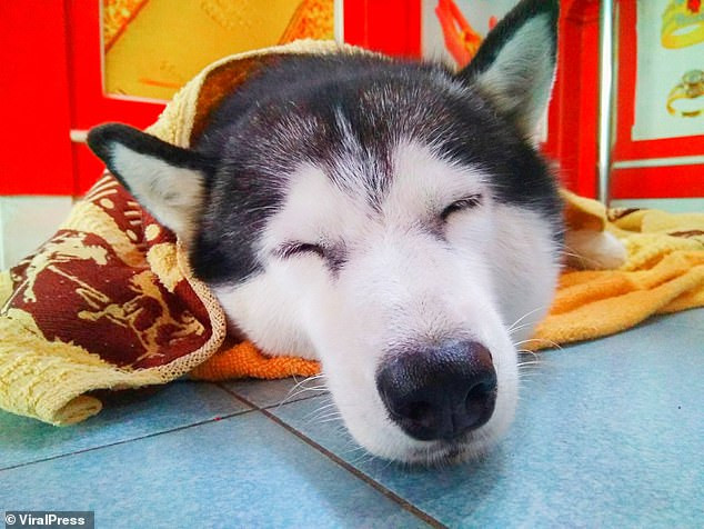 Cảnh quay từ CCTV cho thấy chú chó giống Husky hoàn toàn phớt lờ “tên cướp” cầm súng trong buổi diễn tập ở Chiang Mai (Thái Lan) hôm 16/2.