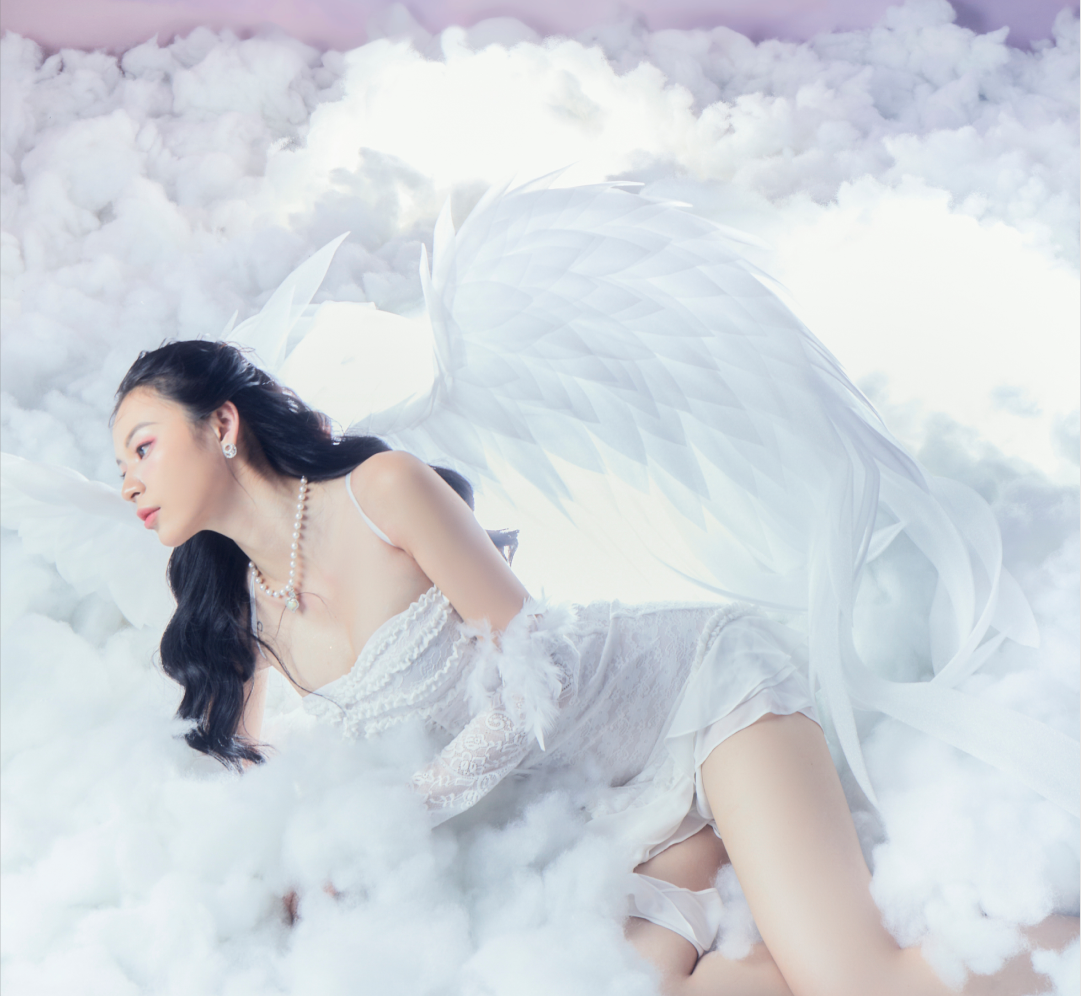Loạt ảnh được cô ‘nhá hàng’ mang màu sắc chủ đạo pastel hồng và xanh dương. Gam màu nịnh mắt kết hợp với tạo hình "thần tiên tỷ tỷ" bay bổng của Phí Phương Anh đã làm cho bìa album thêm phần bắt mắt.