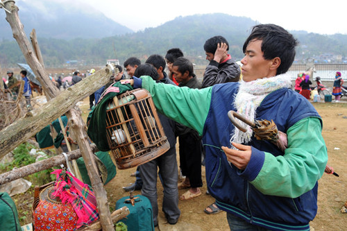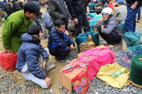 Sau khi đi bộ hàng chục km từ trên núi xuống chợ, những người đàn ông thường tìm một chỗ treo lồng rồi dạo một vòng quanh chợ để nắm tình hình, sau đó mới nhập cuộc