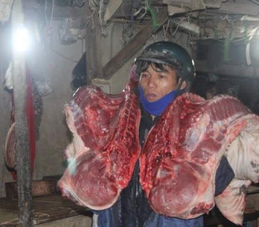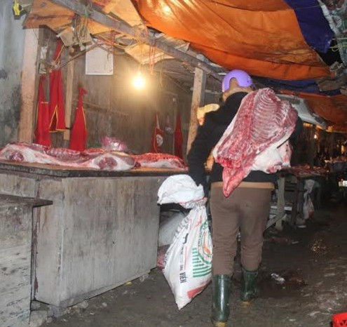 Để làm nhanh và kịp trời sáng, họ đã phải mổ lợn từ 20h. Và 3h sáng đã phải túc trực ở cổng chợ để kịp “xông” vào chợ nhập hàng và được giá.